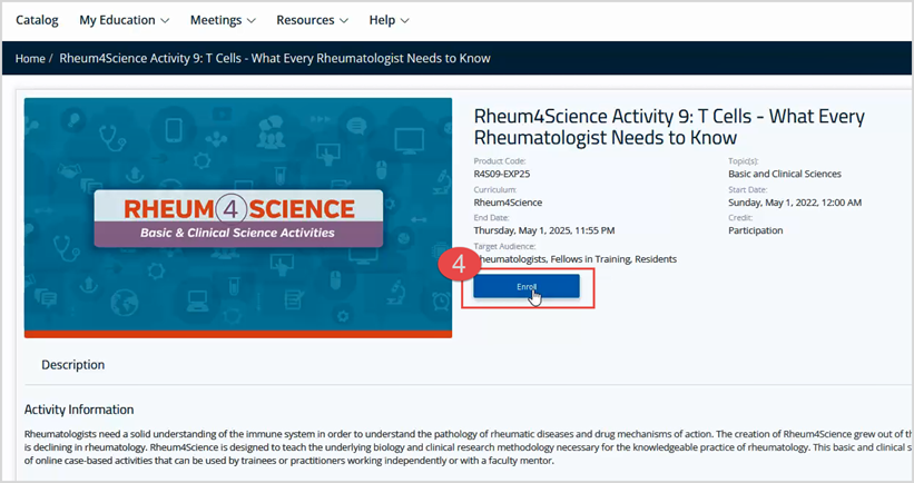 This article describes how to enroll in online activities. As of July 2022, all online activity enrollment is done in the ACR Education Center. For information on how to find available activities, see the article Browse Available Activities.