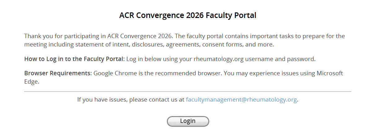 Log In to the ACR Convergence 2026 Faculty Portal